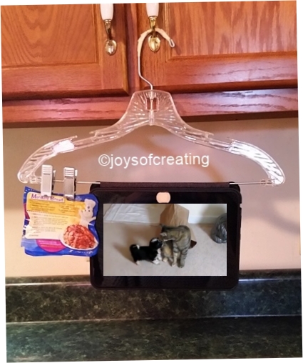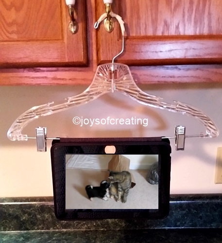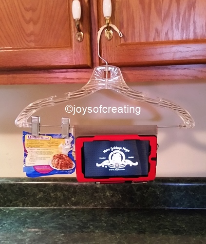 Since my hanger has clips on it, I decided to show it being double helpful by holding a recipe and my tablet both at the same time.
