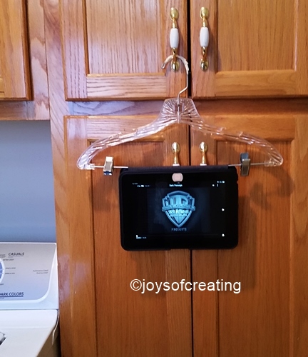 If you use this idea or have thoughts on how to improve it or know of another way to hang a tablet, let me know I enjoy learning helpful things.