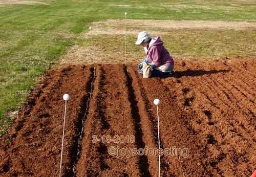 3-18-2019, was 50°F, full of sunshine, yet quite cool and super windy. My husband thought it was a good day to start our garden. He brought home a bag of onions sets to start our gardening season off right.