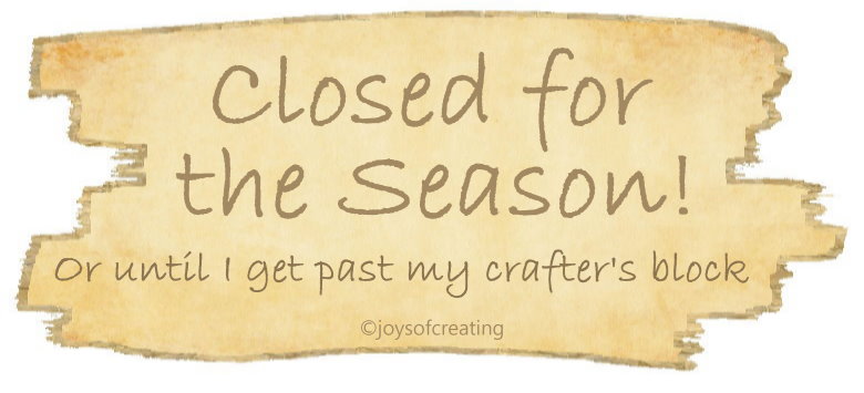 I’ve thought about this for a few months, and I think I need to take a break for awhile. I’m going through a crafters-block (like a writer’s-block only with crafts.) And since this is a crafting blog, the crafter’s-block and blogging has brought my posting to almost a standstill.