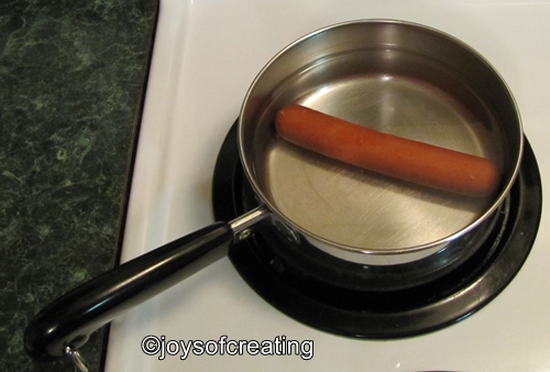 Place the hotdog in a pan of water