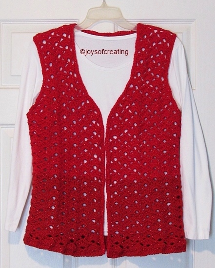 It took me a couple days to decide on a vest… then I searched for a few more days for different patterns and downloaded several of them and printed them off. I tried them and was not happy with any of them. Then it occurred to me that I can free-hand a vest using an ‘open shell stitch’. Tah – dah and that is what I did.