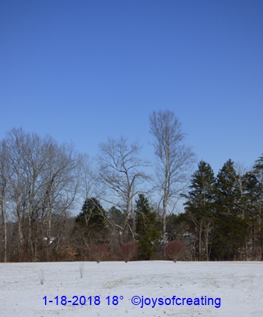 Here in my neck-of-the-woods, it’s a toasty 18°. The sun is shining and the sky is clear and blue. The snow is melting some on the roads and in the yard but not in the shade. It appears our thaw has started, perhaps we are headed for warmer weather for awhile. Perhaps…