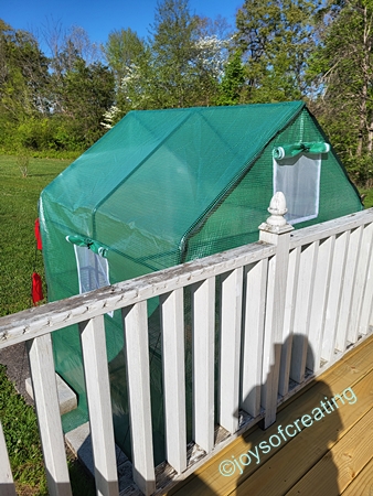 When I’m going to be in the greenhouse any length of time, I have to have the main door flap open. It presents a problem because of wasps and bugs. I’ve pretty much solved that problem by hanging a curtain I fashioned out of netting. The netting also helps keep more air circulating too.