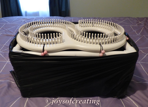 In 2013 when my sister introduced me to loom knitting, my main problem with the loom was the handling of an ongoing project. My wrists would ache and my work would bunch up underneath. It was so awkward for me. I thought I was going to have to quit before I even learned the skill.