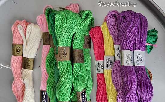Some years back, I inherited several skeins of floss. As I was sorting the floss, I thought there might be some I could use. I noticed something so nostalgic that it made my heart smile. The prices on the floss were 3/10¢, 5¢, 12¢. Ahhh, the good-old-days. 🧵🪡