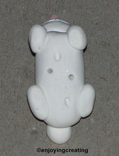 Bake the polymer clay bunny at the manufacturers recommended temperature and for the recommended length of time.