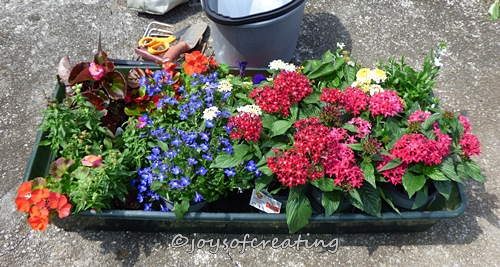 With the exception of a few inside/window plants, I had no intention of gardening nor growing anything but pre-started annual flowers this year. That changed when we went to look for annuals to plants in our flower beds. We got some pretty flowers of several colors.