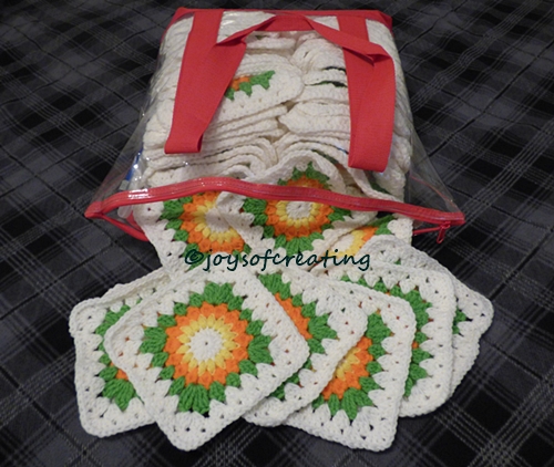 I finally got the white rounds on my sunburst granny squares. Now I’m working on the next round. Only two more rounds to go then I can join them and start on another project. It’s taking me a lot longer on this one than the others. To be honest, my interest is lacking at the moment. But with time, I’ll get them finished.
