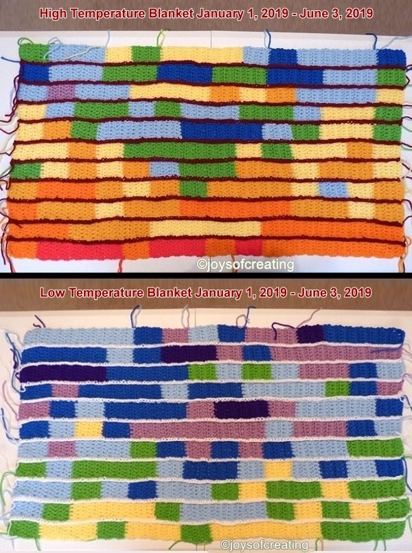I decided to skip May temperature blankets update and wait until June to do my update so they’d be a bit bigger than every couple weeks.