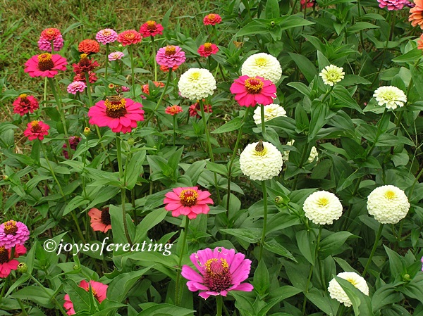 We decided to do away with a couple of our flowerbeds and let the areas go back to yard. My husband took the soil from the flowerbeds and put it on our garden. The result from adding the soil to our garden is volunteer zinnias growing sporadically throughout the rows among the vegetables.